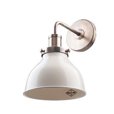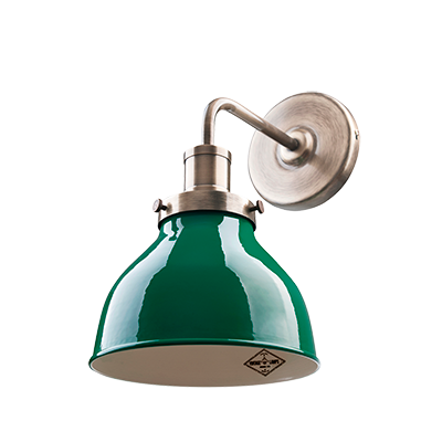 Aplique de pared construido en acero pintado en polvo horneado 200º. Brazo, base y capuchón superior en bronce viejo. Portalámpara E27.