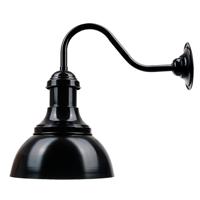 Aplique de pared con brazo curvo y pantalla construido en acero con terminación en pintura poliéster en polvo horneada. Portalámpara E27.
